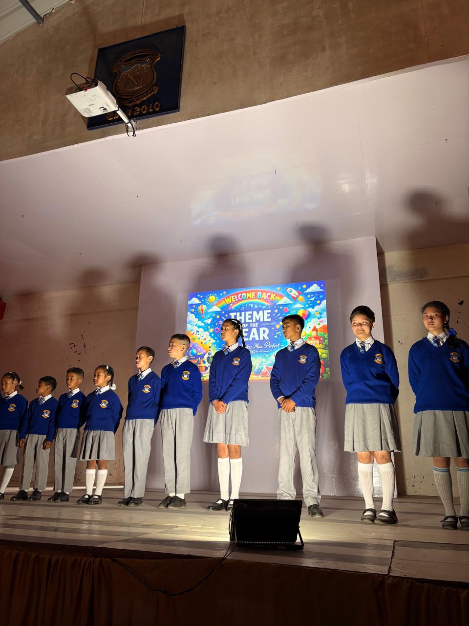 Danach ging es in die Aula, in der das Motto des Jahres: „Übung macht den Meister“ eingeführt wurde. Ein Motivationsvideo wurde präsentiert, um die Schülerinnen und Schüler dazu zu ermutigen, fleißig und konsequent zu üben. Unser Schulleiter hielt eine inspirierende Rede und ermutigte die Schülerinnen und Schüler dazu, ihre Ängste zu überwinden, an ihren Mängeln zu arbeiten.